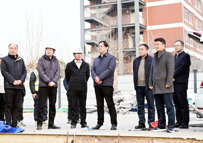 1月4日下午,党委书记岳宝德,党委委员、副校长田杰昌一行深入南校区新上基建项目施工现场调研指导工作,并召开项目建设座谈会。