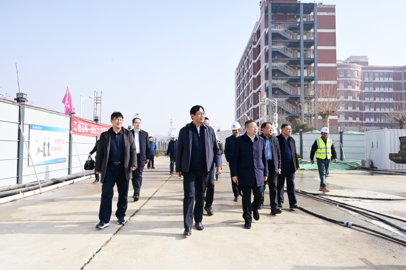 宋鸿鹏一行深入施工一线,仔细查看工程施工情况,详细了解施工进展、安全保障与质量管理措施,并就项目面临的具体问题,与我校及施工单位负责人进行了现场交流。对学校提出的诉求,他表示将坚持“特事特办、急事急办”原则,在依法依规的前提下开辟绿色通道,全力协调解决项目遇到的问题。他强调,保障泰山学院新上基建项目按期投入使用意义重大,各相关职能部门要主动靠前服务,相关审批、监管与服务保障工作必须同步跟进、全力配合,确保项目不停工、推进不减速。